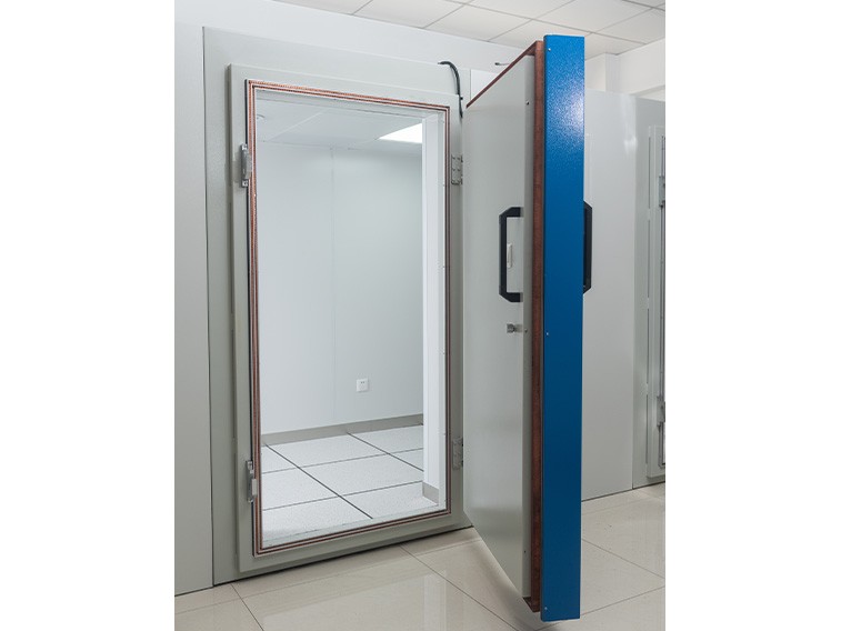 屏蔽室的進(jìn)出通道,適用于所有規(guī)格的屏蔽室、微、電波暗室、局放屏蔽室。采用插刀式結(jié)構(gòu)、鉸鏈轉(zhuǎn)動,是現(xiàn)今使用較為廣泛的電磁屏蔽門。